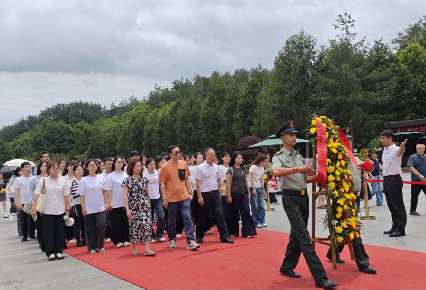 活动伊始,全体党员在毛泽东铜像广场集合,庄严肃立、整齐列队,缓步拾级而上,向毛泽东同志铜像敬献花篮、行三鞠躬礼并绕铜像一周,表达对毛泽东同志的深切缅怀和崇高敬意。