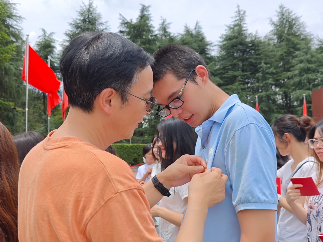 接着,开展入党宣誓。由经理唐小芹、党委副书记刘图其、院组织员刘美伶为新发展党员发放《中国共产党章程》、老党员为新发展党员佩戴党徽。鲜红的党旗下,唐小芹作为领誓人,带领全体党员一起高举右拳,面向党旗郑重宣誓。