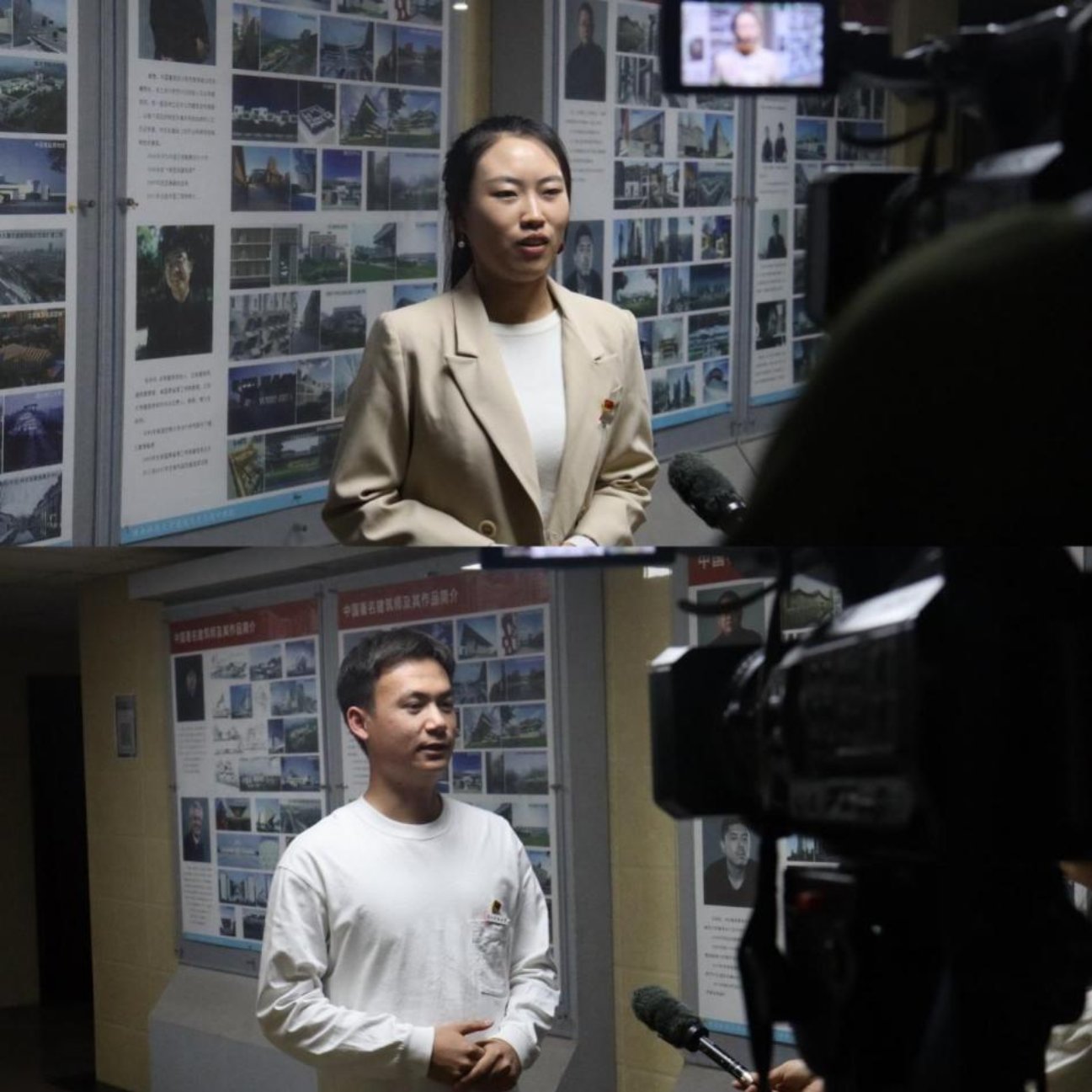 ▲马院2020级研究生赵志颖、许庆林接受湘潭市电视台采访