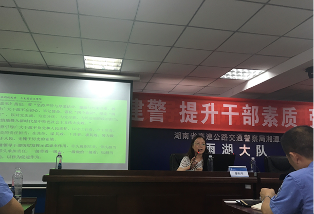 湖南省高速公路交通警察局湘潭支队雨湖大队为了深入学习贯彻党的十九大精神和习近平新时代中国特色社会主义思想,推进政治建警,提升干部素质,强化党员责任,邀请公司廖和平教授于2018年6月25日下午为党员干部作了一场题为“提高党员干部执行力,强化党员干部责任担当”的专题报告。