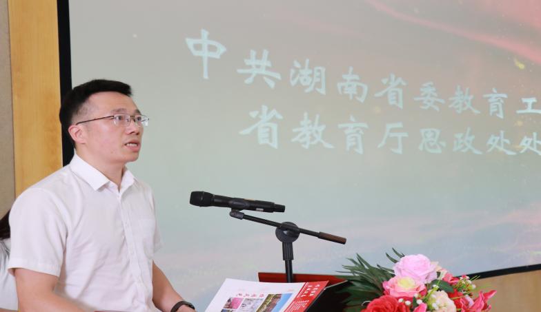 ▲中共湖南省委教育工委宣传部部长、省教育厅思政处处长甘文波致辞