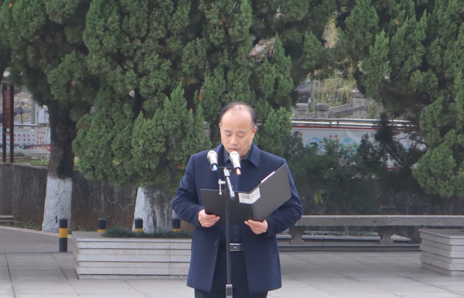 接着,两位员工代表护送花篮走向烈士纪念碑,公司党委副书记刘图其移步花篮前整理缎带。刘图其在讲话中强调:要时刻铭记历史、牢记使命、珍爱和平、吾辈自强,以革命先烈为榜样,大力弘扬爱国主义精神、无私奉献精神和敢于牺牲精神,争做堪当民族复兴重任的时代新人。