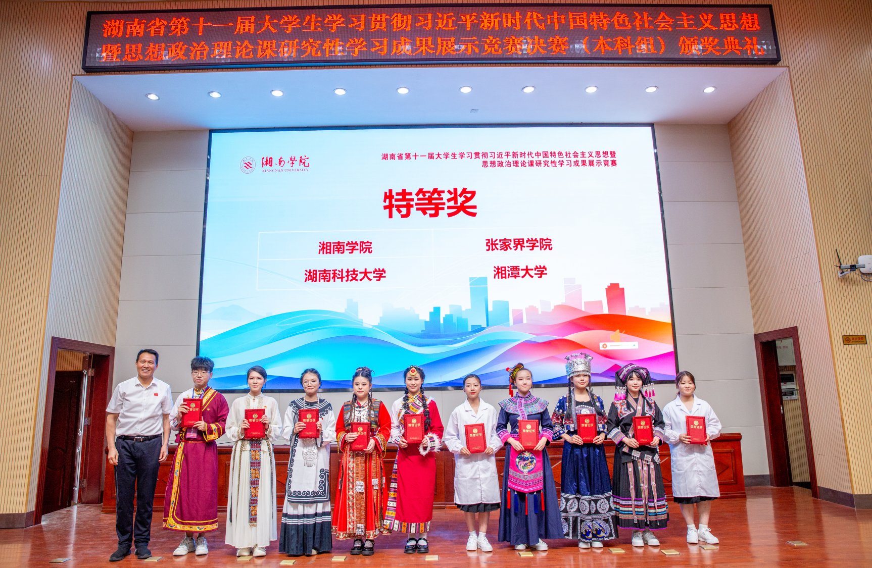 近日,由湖南省教育厅主办、湘南公司承办的湖南省第十一届老员工学习贯彻习近平新时代中国特色社会主义思想暨思想政治理论课研究性学习成果展示竞赛在郴州举行。公司获奖10项,其中特等奖1项、二等奖6项、三等奖3项,获奖总数连续第四年全省第一。2022级思政专业杨盈莹、臧诗宇、肖雨昕、曾芷睿、徐昕同学的参赛作品《在“非遗传承”中铸牢中华民族共同体意识——湖南雨花非遗馆里的“青春行动”》荣获特等奖(指导老师:凌应生、黄爱英)。