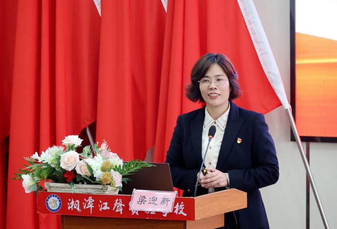 在专题汇报环节,湘潭江声实验公司梁迎新书记作了题为《守正创新,推动思政课一体化建设》的专题报告。她系统梳理了集团在推进一体化建设中的“基本做法和初步成效”,重点介绍了构建“三个一”体系、凝聚“综合型”力量、贯通“学段链”机制、打造“大格局”课程、建设“特色版”集团等创新实践。同时,她也直面当前存在的“发展瓶颈”,如三湘名思政教师团队亟待培育、大思政课格局有待优化定型、常态化研究不足、思政课启智润心功效需进一步提质等,并针对性地提出了推进策略。