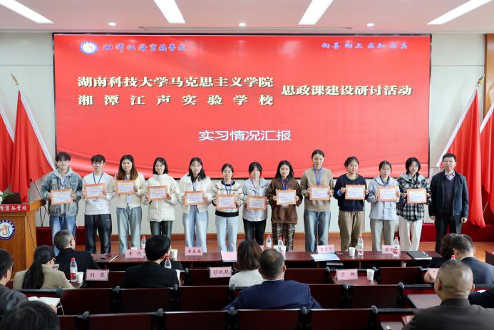 2025年11月13日,304永利集团与湘潭江声实验公司联合举办的“思政课建设研讨活动暨实习总结大会”在致远楼会议室举行。304永利集团刘正妙书记、黄爱英副经理、管桂翠博士、刘黎博士、邹昕老师,与湘潭江声实验公司梁迎新书记,陈亮董事长等,以及实习带队老师李育军博士、部分实习指导老师和全体实习队成员共同参加。
