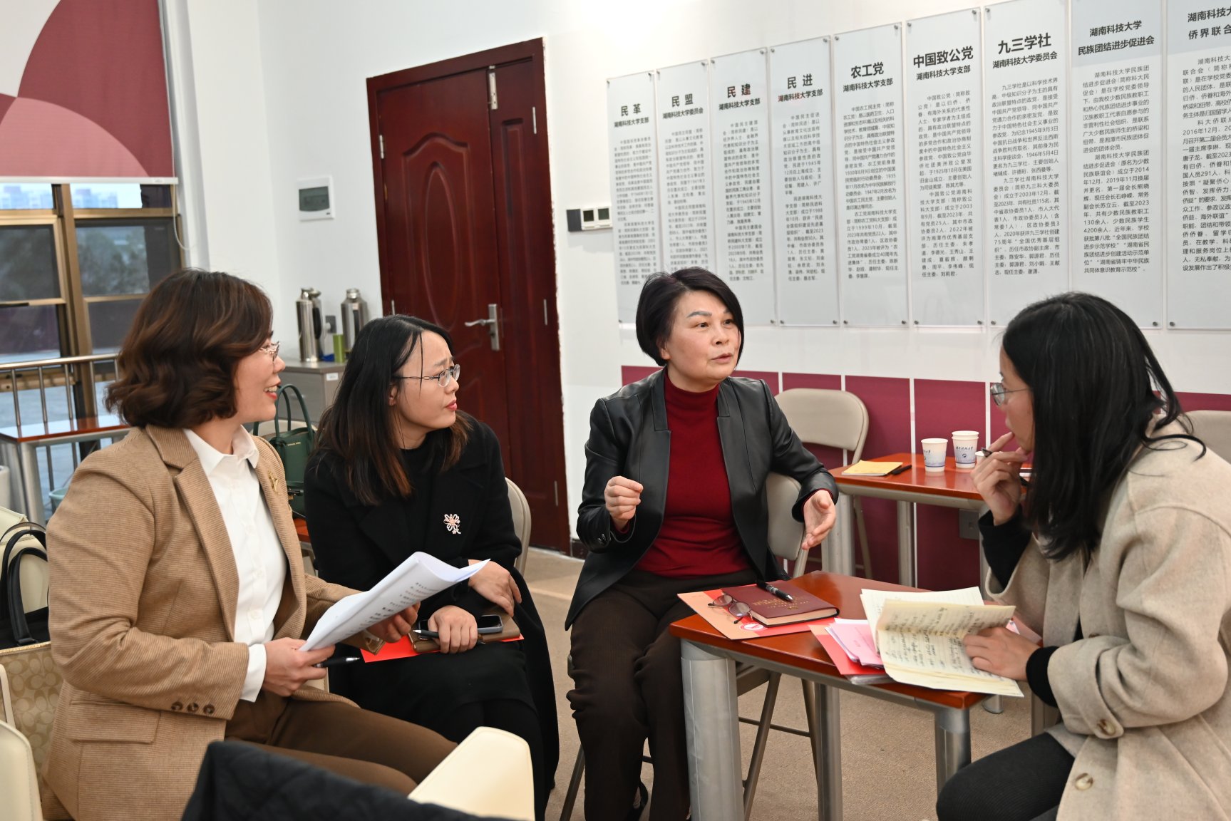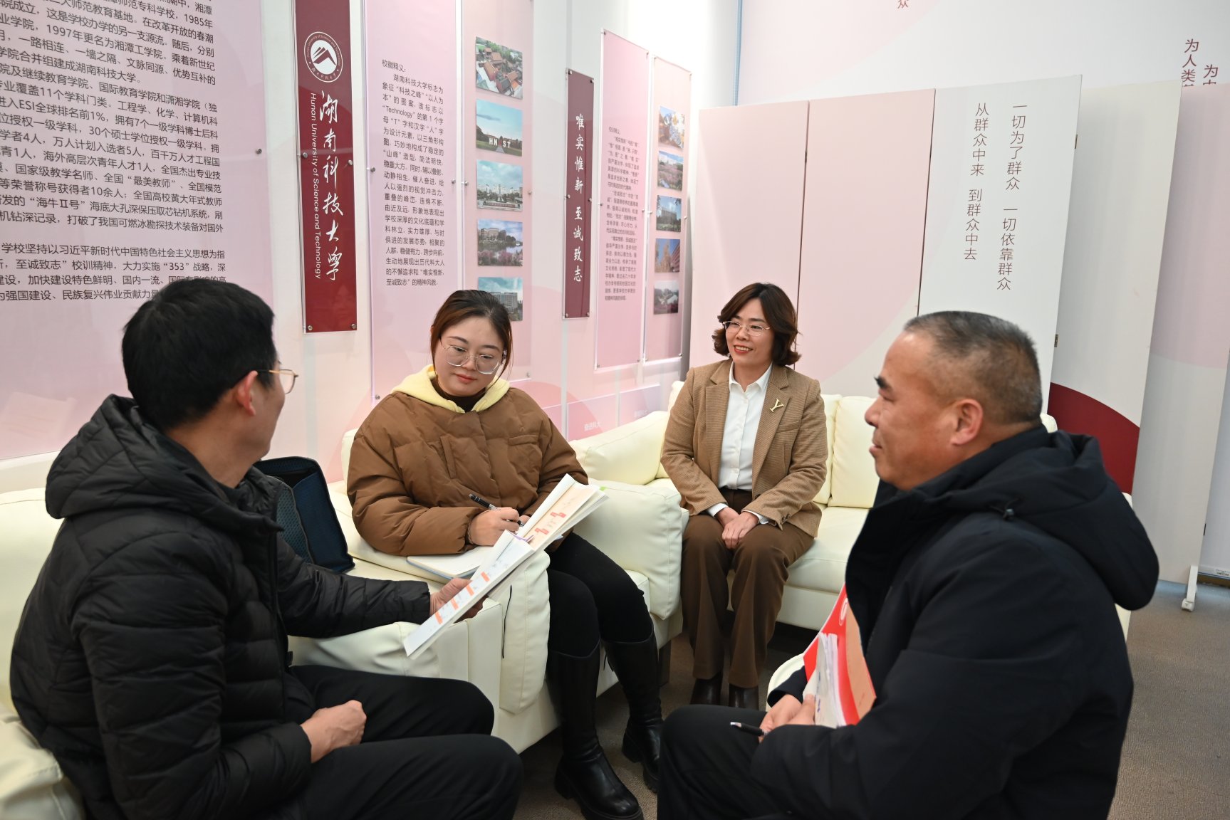 1月7日下午,《中国教育报》《湖南教育》记者团队来校采访公司大中小学思政课一体化建设工作。采访活动在立德楼101进行,本次采访旨在深入挖掘公司推进大中小学思政课一体化建设的生动实践、宝贵经验和显著成效。采访团队由多位资深媒体人组成,包括中国教育报刊社湖南记者站副站长、湖南教育报刊集团新媒体部部长阳锡叶,《湖南教育》记者吴秀娟,中国教育报刊社湖南记者站记者、湖南教育新闻网记者余杏,《湖南教育》记者卿前进等。公司潇湘公司经理、湖南省高校思想政治工作名师工作室负责人禹旭才,公司副经理黄爱英、学科教学·思政硕士点负责人彭立春、思政专业教师代表李育军、青年思政课教师代表熊耀林,以及湘潭县二中思政教研组组长张炳华,湘潭县云龙中学党总支书记、湘潭县高中思想政治名师工作室负责人梁迎新,湘潭县教研室思政教研员陈武进,湘潭市雨湖区九华和平科大小学董事长李莉等接受了采访。此次采访现场气氛热烈,内容深入全面,不仅为公司提供了一个展示大中小学思政课一体化建设成果的平台,也为进一步推动大中小学思政课一体化建设工作提供了有力支持。