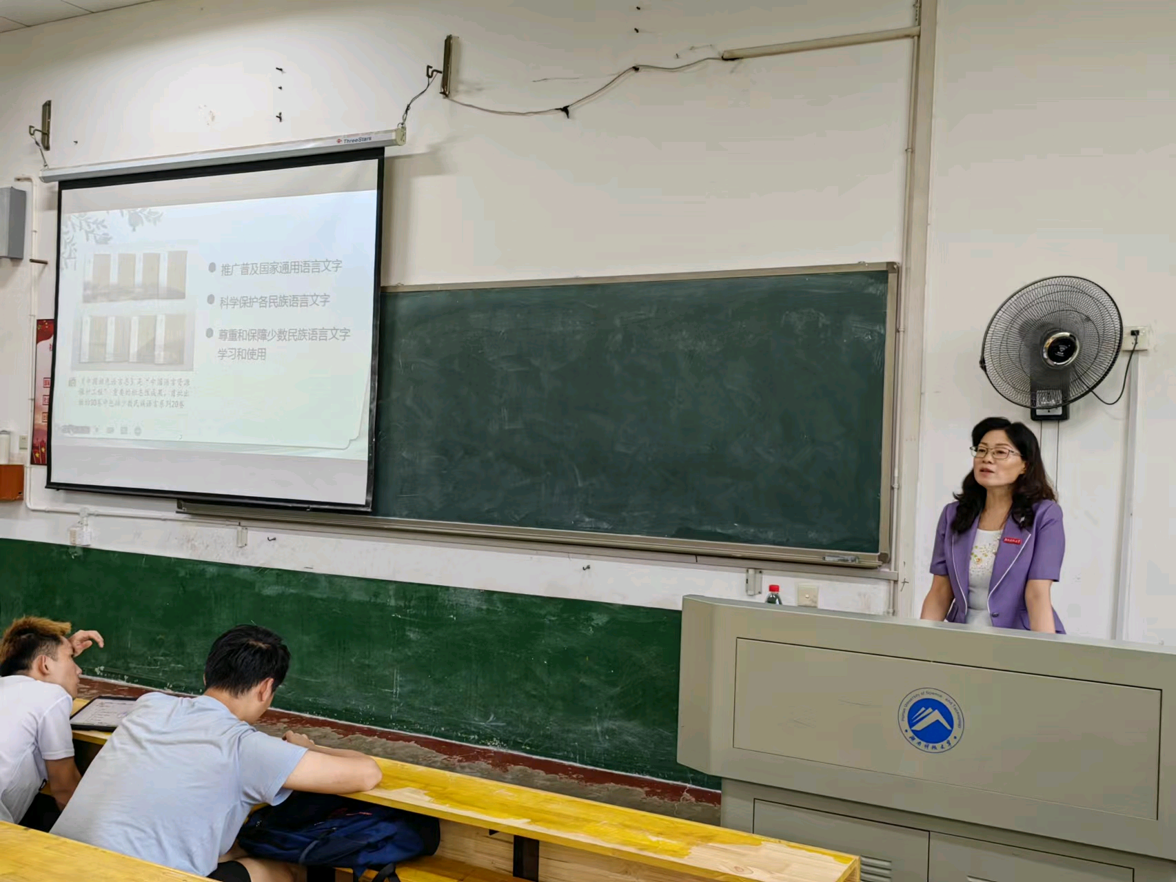 课堂上,谢慧围绕“团结之源”“变化之巨”“长远之治”三个话题展开讲述,指出我国是一个统一的多民族国家,民族团结关系到中华民族的生死存亡,关系到国家的安危和各族人民的根本利益。民族团结是一种精神、一种思想整合力量、一种追求,它对凝聚人心、整合社会起着重要作用。谢慧从构筑中华民族共有精神家园、促进各民族广泛交往交流交融、提升民族事务治理体系和治理能力现代化水平和防范化解民族领域风险隐患这四个方面重点讲述实现中华民族伟大复兴的途径,并强调了完善立法、严格执法、规范监督和强化普法的现实意义。谢慧指出,党和国家高度重视民族工作,各民族交往交流交融广泛拓展,中华民族共同体意识不断增强,平等团结互助和谐的社会主义民族关系不断得到巩固和发展。历史和现实充分表明,中华民族是一个命运共同体,一荣俱荣、一损俱损;民族团结是我国各族人民的生命线,各民族共同团结进步、共同繁荣发展是中华民族的生命所在、力量所在、希望所在。最后,谢慧强调各民族只有相互了解、相互尊重、相互包容、相互欣赏、相互学习、相互帮助,才能像石榴籽一样紧抱在一起,才能增进文化认同,进而激发出各民族更深沉而持久的爱国之情,共创繁荣而灿烂的中华文化。在课堂接近尾声之际,她向同学们提出了两个问题:怎样深刻认识铸牢中华民族共同体意识的历史必然性、极端重要性和现实针对性以及新时代如何推动党的民族工作实现高质量发展。这两个问题引起了同学们的深思,进一步加深了同学们对中华民族共同体的认识。