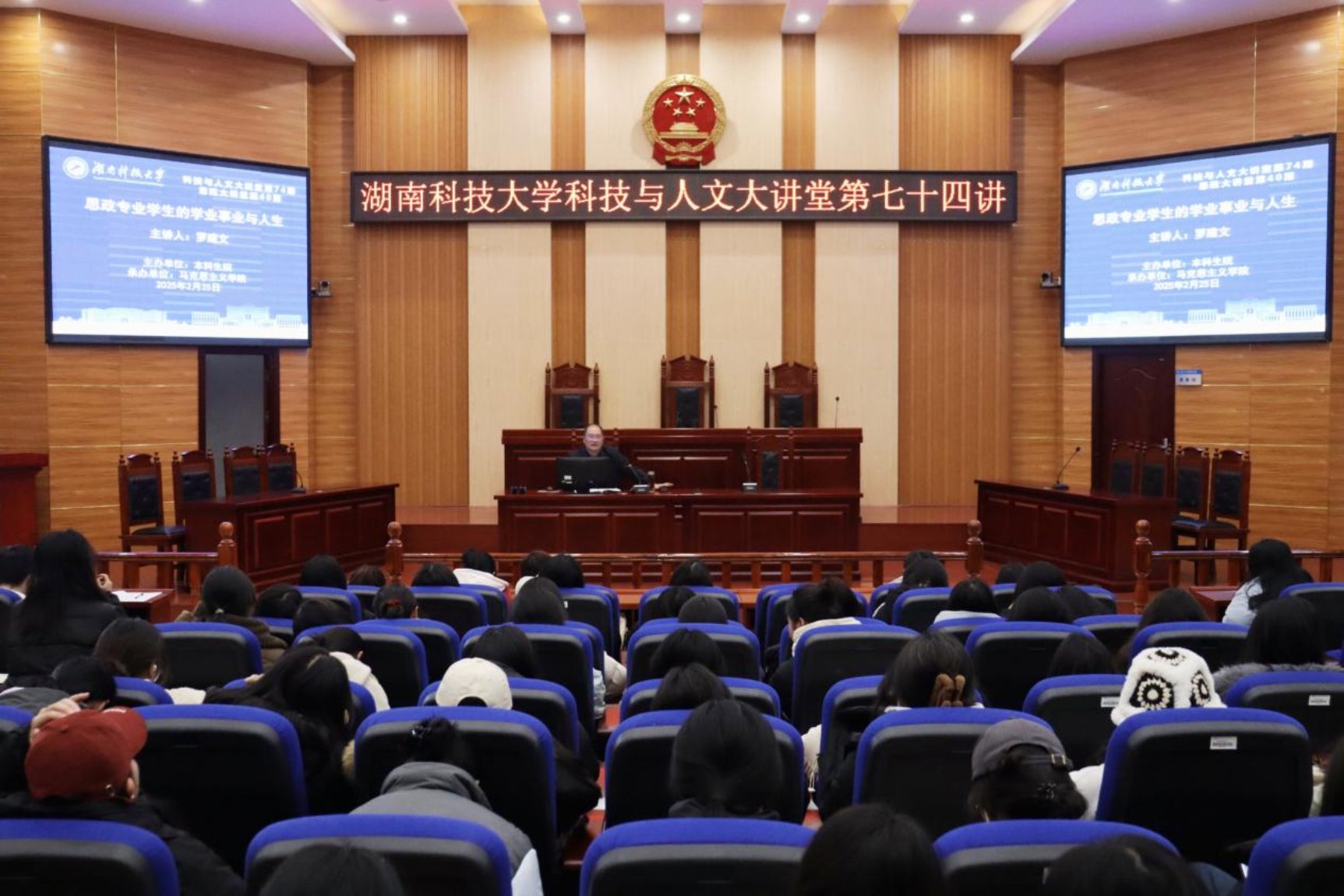 2月25日下午,公司“科技与人文大讲堂”第74讲暨304永利集团“思政大讲堂”第40期在立言楼摸拟法庭3-2隆重举行。本次讲座由公司罗建文教授担纲主讲,主题聚焦于“思政专业员工的学业、事业与人生”,活动由思政系系主任凌应生副教授主持,2024级全体思政专业本科生齐聚一堂,共同聆听了此次讲座。