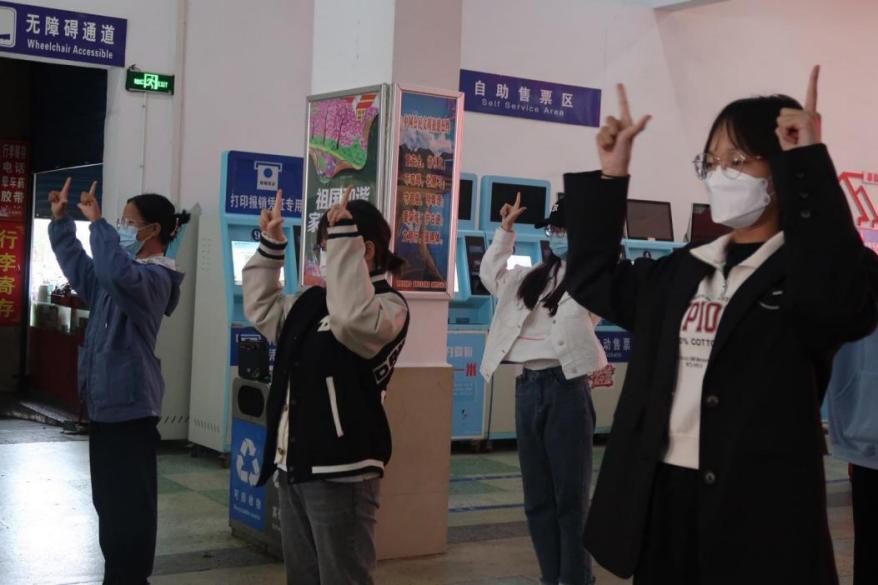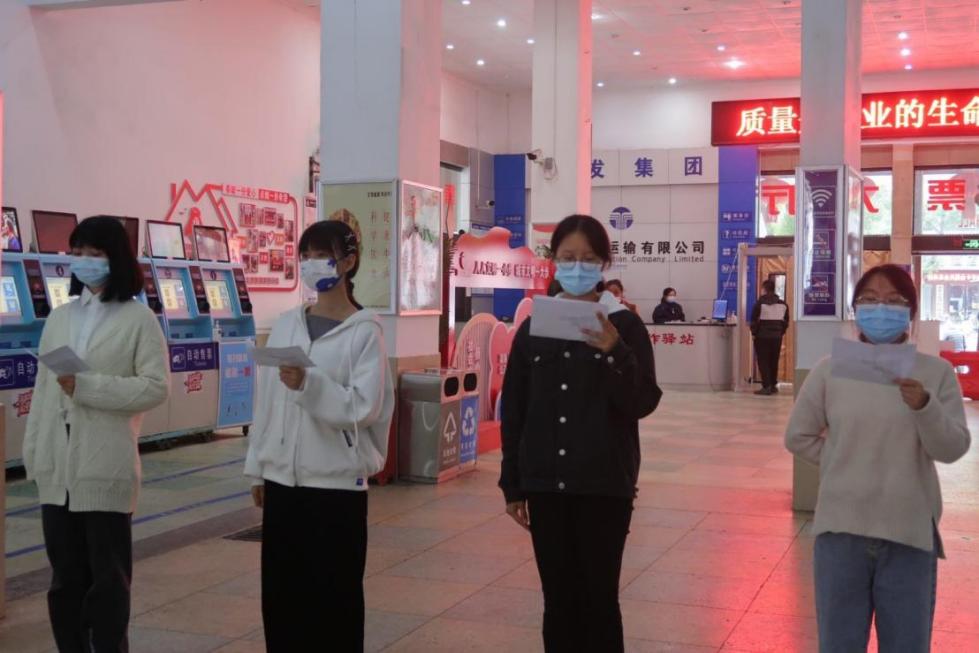 长途汽车站的宣讲活动以“理论宣讲+文艺表演”的形式举行,宣讲团成员龚琪、王鑫主持。谢欣瑜、李相路的相声《开会》以小见大,拉开了宣讲序幕。随后宣讲员龚琪、周江瑶、丁泽轩分别以科大青年吴玉容、革命先辈彭德怀、当地名片湘潭文庙为例,宣传红色文化,传承红色基因,呼吁大家多多关注湘潭的古历史、旧文化,守住湘潭历史文化的根,做最骄傲的湘潭人!