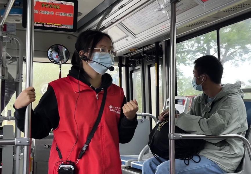 在公交车上,四位宣讲员吴浩琪、吴珊、陈怡蕾、付银欢分别从公司、社会、国家三个层面出发,以科大“海牛”Ⅱ号、生活中的尊老爱幼和喜迎二十大为主题,宣传科大变化、湘潭历史、传统美德、伟大成就、党的历史等。通过宣讲,引领市民热爱家乡、倡导文明,以崭新的面貌迎接党的二十大召开。