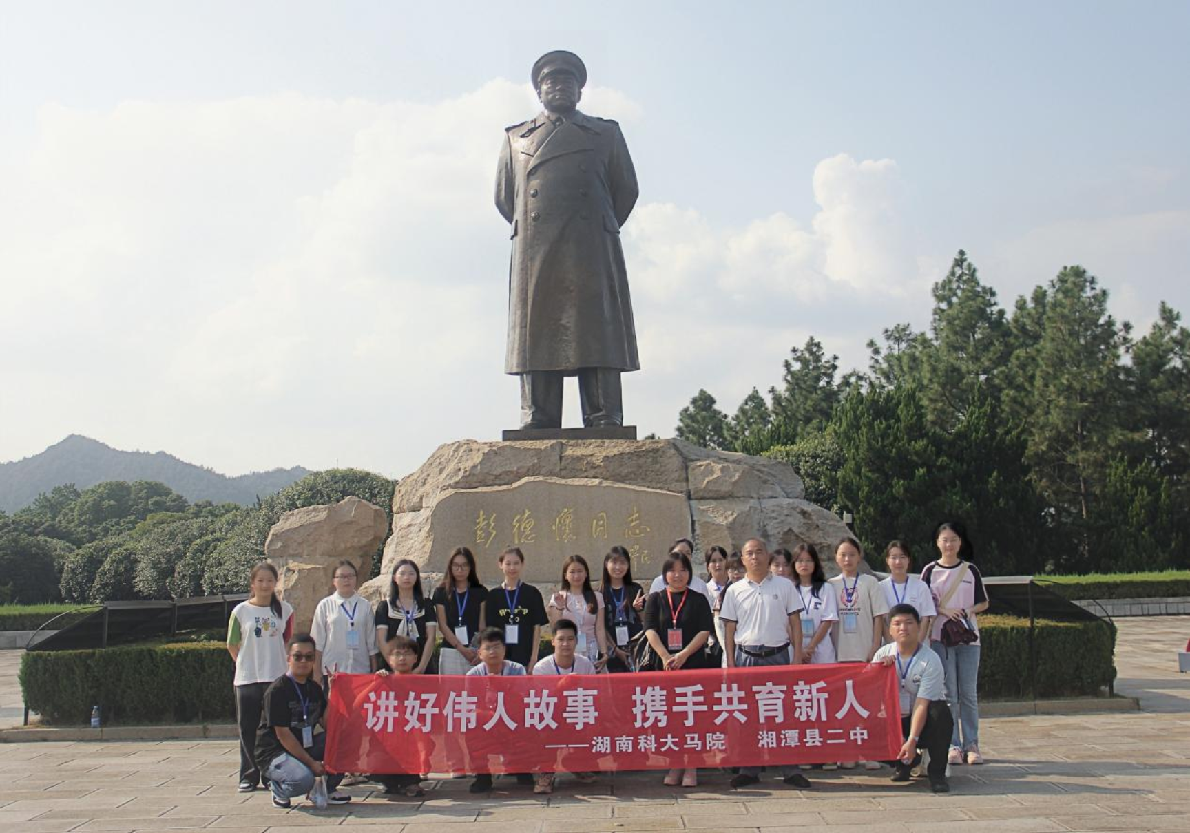 下午,团队前往彭德怀红军小学,实习队代表袁伟、李相路就公司的发展历程、教学宗旨以及德育文化等问题采访了罗军董事长。随后,团队参观了纪念馆、故居和德怀墓,倾听了胡依曼老师与符芊媛老师在铜像广场开讲的流动思政课。通过讲好伟人故事、缅怀先烈的实践教学,大家深刻感受到湘潭本土鲜活的红色精神,更加坚定作为思政课教师运用红色文化培育家国情怀,传承红色基因,赓续红色血脉的使命与担当。