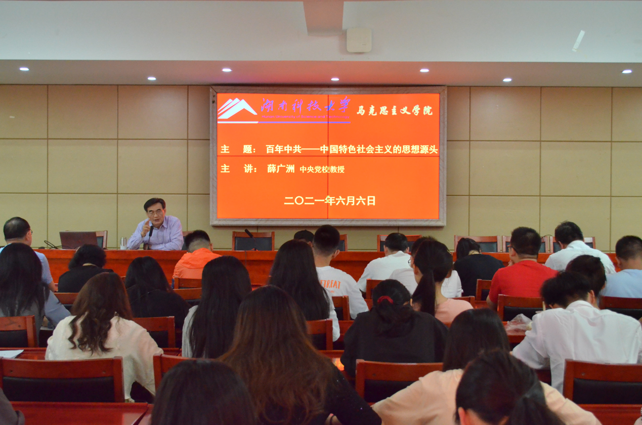2021年6月6日上午,中共中央党校教授、全国毛泽东哲学思想研究会副会长薛广洲应邀来公司,在立言楼5-1作了题为“百年中共—中国特色社会主义的思想源头”的学术报告。此次报告由经理吴怀友教授主持,公司部分教师和员工党员到场聆听。