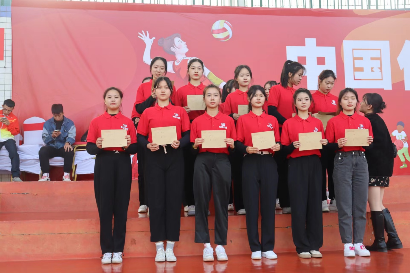 接下来是颁奖仪式。网球代表队队员郑仲楠、张慧琳、毛毅恒、卢永滔、易承浩、王亦男,奋勇当先,荣获第五名的好成绩!足球代表队队员邓可、侯杨林、胡新杰、于骥源、薛良曦、夏梓轩、边玛旦增、王鑫、李程亮,过关斩将,跻身八强!运动场上的他们奋勇拼搏、自信昂扬;领奖台的他们意气风发,喜气洋洋。