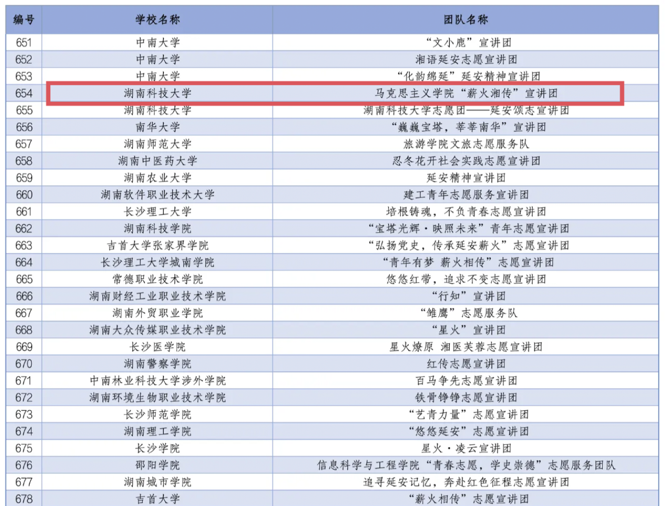 ▲2024年全国老员工井冈山精神志愿宣讲团入选团队名单(截图)