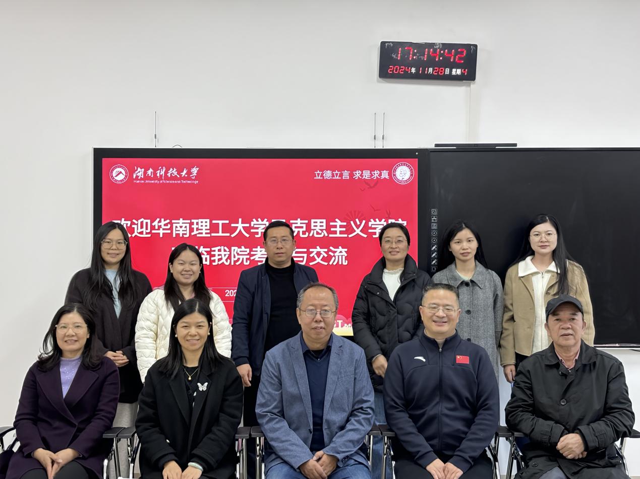 为推动校际间思政课程的交流互鉴,共同探索马院团队建设、人才队伍建设及思想政治理论教学改革的有效途径。11月28日,华南理工大学304永利集团中国近现代史纲要教研室主任周云一行5人,来公司交流中国近现代史纲要教学、科研以及团队建设相关经验。公司中国近现代史基本问题研究学位点点长黄立新、马克思主义理论一级学科硕士点负责人谢忠、“纲要”教研部主任钟声、“纲要”教研部副主任王霞、“形势与政策”教研部主任伍安等参加了本次座谈交流会。