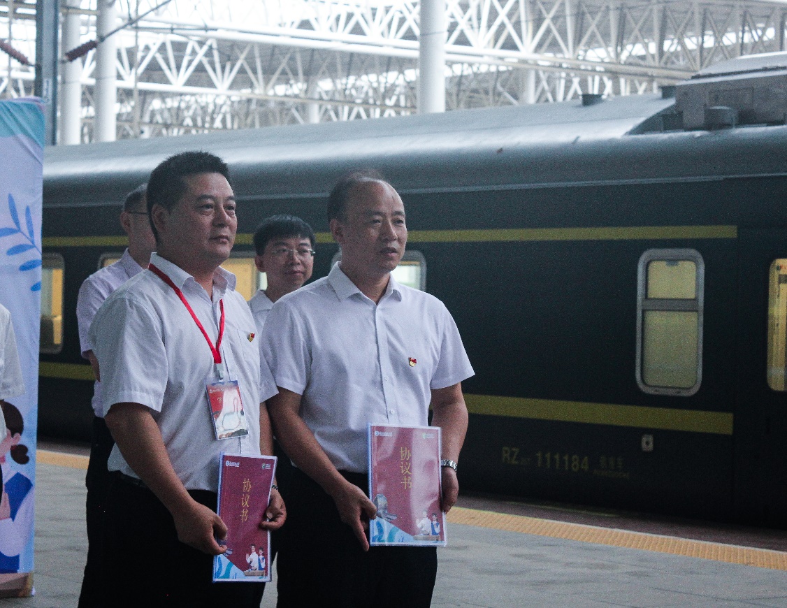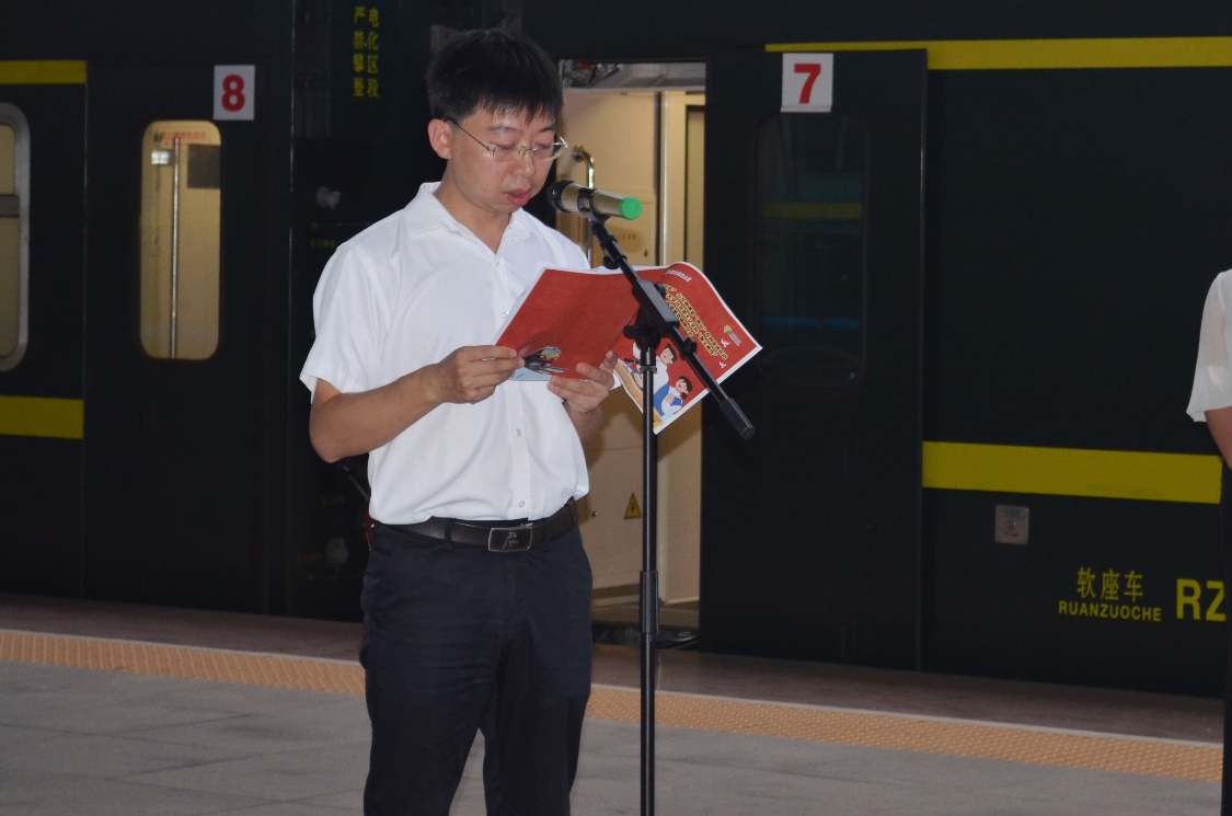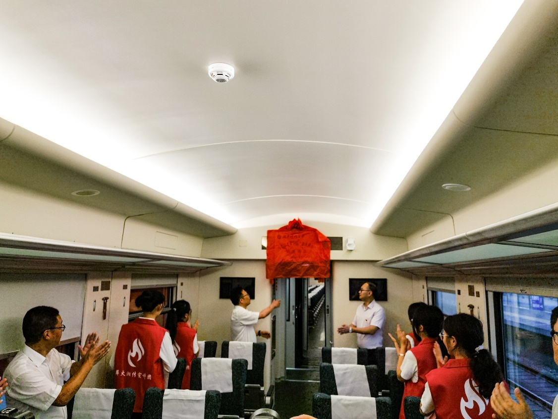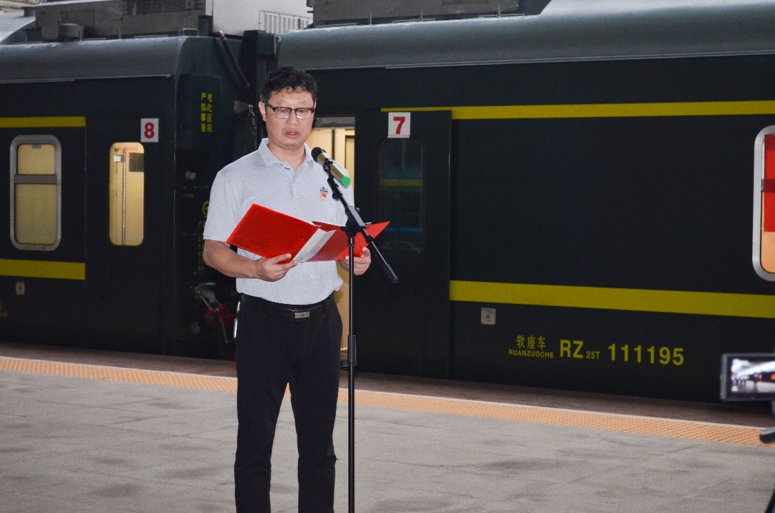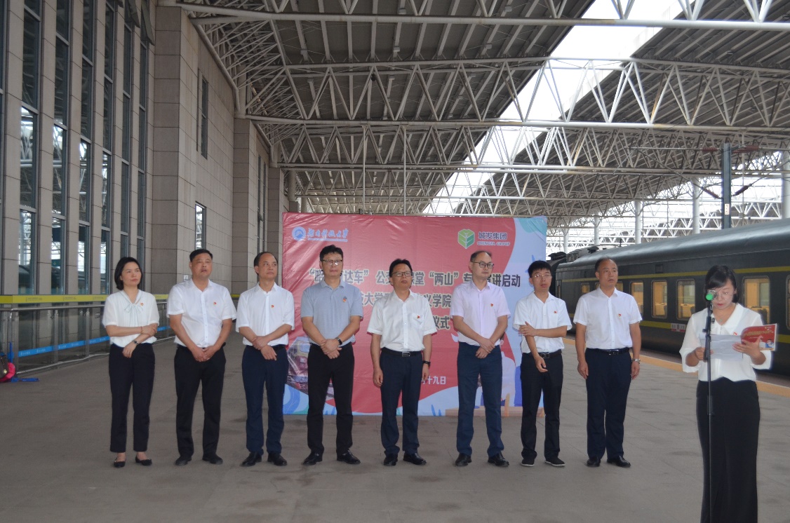 6月19日上午,校宣传部副部长李洪华、公司党委书记刘正妙、党委副书记刘图其、“薪火湘传”理论宣讲团指导老师及20余名宣讲团成员一行赴湘潭火车站,与湘潭城发集团党委副书记叶仕良、湘潭交发集团党委副书记裴道明、湘潭交发集团党委委员邓鸿君及湘潭城发集团党群工作部、湘潭红旅集团相关负责人员联合开展“薪火湘传”宣讲基地揭牌暨“两山”专列宣讲活动启动仪式。