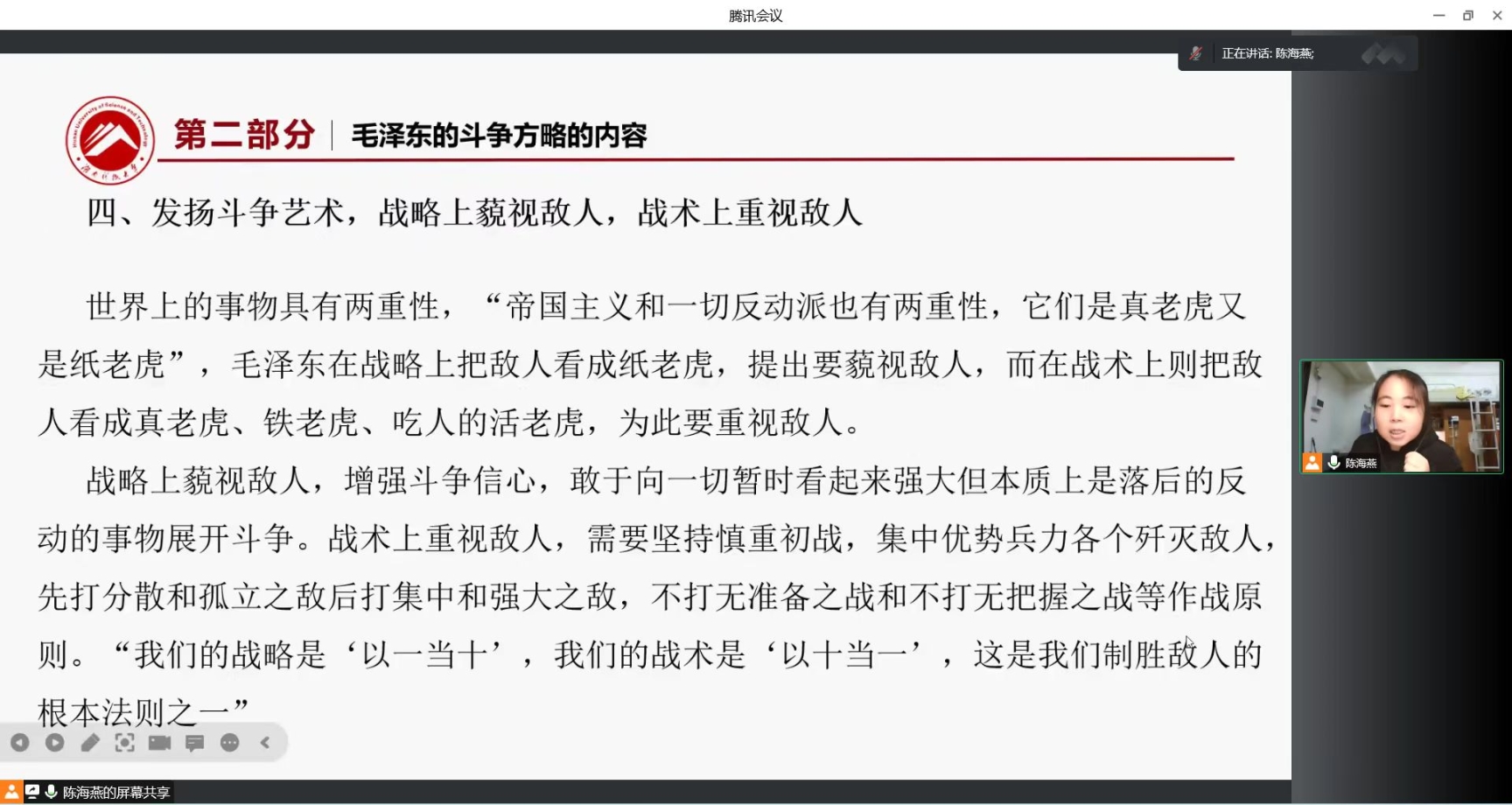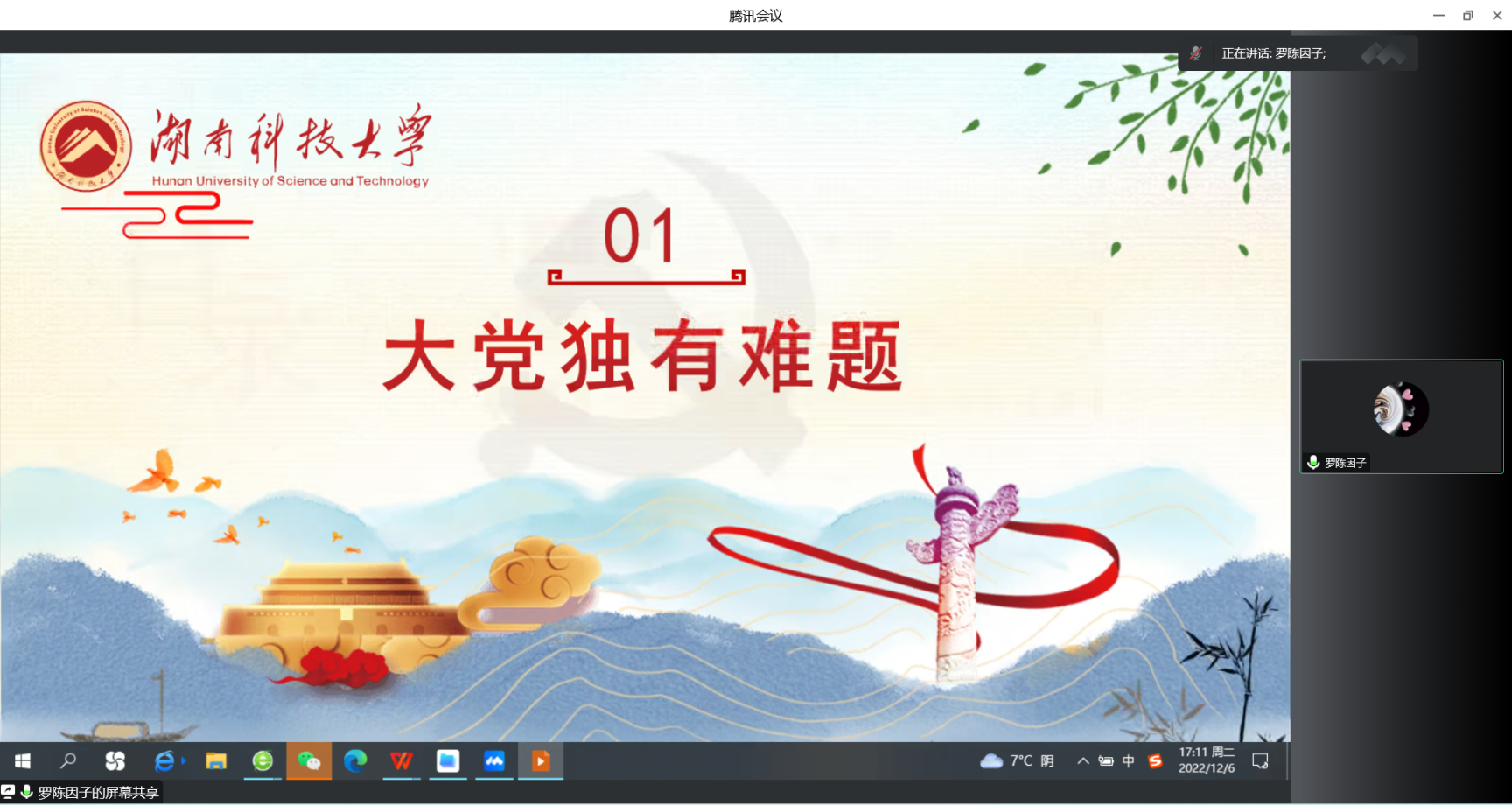 为深入学习研究党的二十大精神,2022年12月6日,公司22级马克思主义发展史方向在线上举行了主题为“深入学习党的二十大报告”的读书报告会。报告会由谢忠老师主持,韩平老师、戴开尧老师、彭曼丽老师、周建华老师莅临指导,2022级马克思主义发展史方向全体硕士生参加。