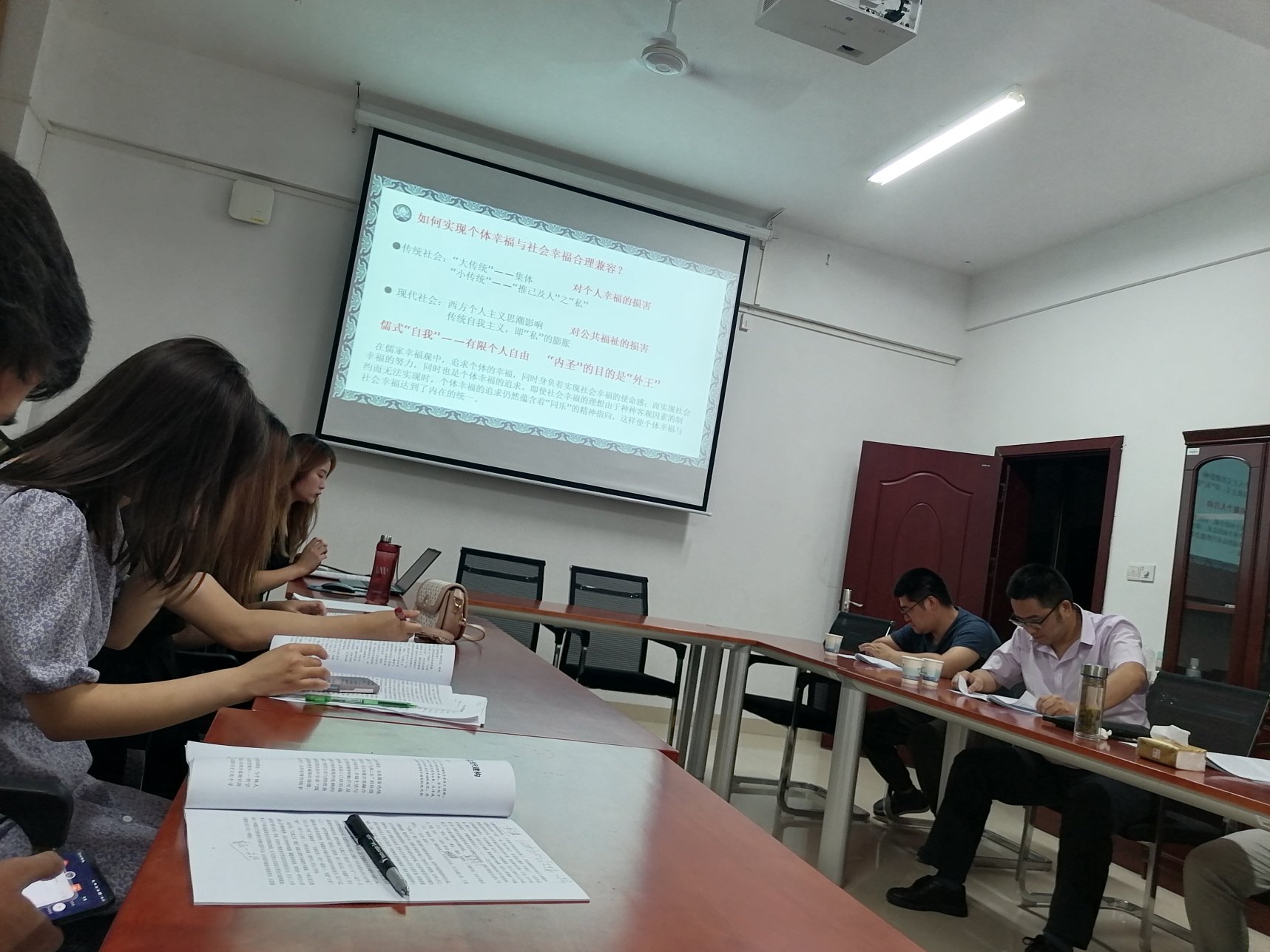 今年喜迎中国共产党建党100周年。中国共产党的创建、发展与壮大,实质是马克思主义理论与中国国情相结合与飞跃的过程,既是一脉相承,更是不断创新。同时,这一过程也是深入认识、积极寻求和努力解答中国现代性问题的过程,为我们更好地理解自近代以来中国社会变革的深层动机和现实意义,系统反思中国现代性问题。公司哲学硕士点于2021年6月18日晚上7:30在立言楼A630举办了以“建党百年与中国现代性”为主题的读书报告会。莅临此次读书报告会的点评老师有廖加林教授、颜中军副教授、龚超博士、汪隐峰博士以及湘潭大学张晚林教授和罗伯中副教授,全体哲学研究生参与旁听学习。