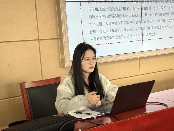 此次读书报告会的主题是《思想政治教育守正创新》,展示了四位同学的学习成果。吴晓同学以《新时代文化使命的出场语境与内在逻辑》为题,解读了新时代文化使命有关基本理论问题,认为要以习近平文化思想为指引,把握新时代文化使命的内在规律,聚焦思想政治教育的现状,优化思想政治教育文化环境,培育时代新人。李丹同学选取了《实践论》这篇文章,探讨了《实践论》对高校思想政治教育的启示,认为高校思想政治教育要从实践出发,让青年老员工学会运用马克思主义立场、观点和方法去分析解决现实问题,帮助他们树立正确的世界观、人生观和价值观。李绍聪同学从价值引领、文化根基、战略任务和发展道路等四个维度解读了习近平文化思想,阐释了习近平文化思想的价值意义。报告会还分享了林欣同学关于推动大中小思政课一体化建设的学习心得,从大中小学思政课一体化的内涵、要求和措施三个方面展示了学习成果。