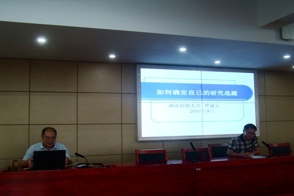 2017年9月12日下午,公司罗建文教授在文科楼A5-1报告厅作了题为“如何确定研究选题”的报告。报告会由304永利集团副经理兼党委副书记刘大禹教授主持,304永利集团部分老师及全体硕、博研究生参加,论坛还吸引了法学与公共管理公司、人文公司的部分师生前来参加。