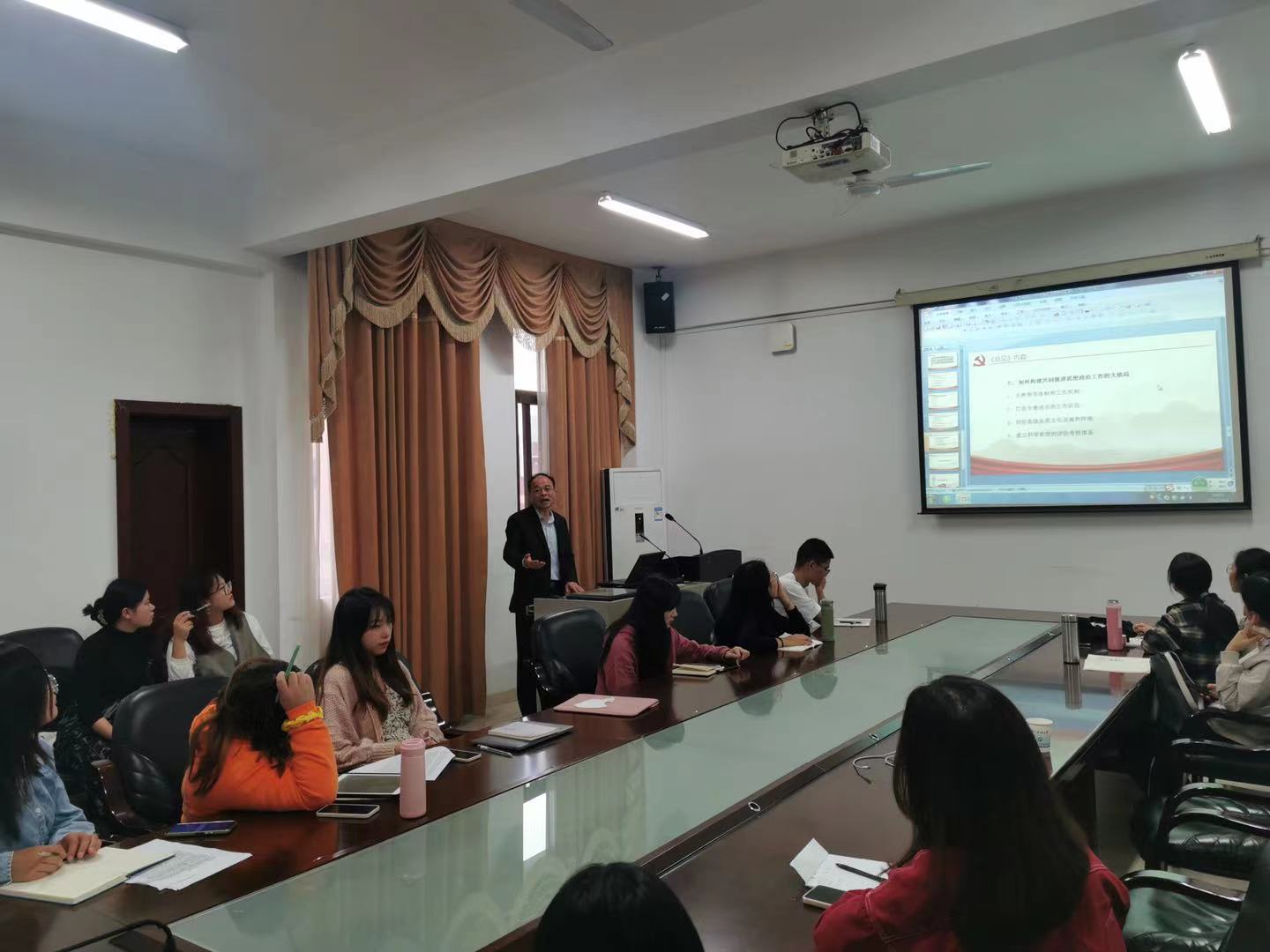 为了增强研究生的学习能力、夯实研究生的理论基础,2021年10月8日下午,公司2020级思想政治教育研究方向研究生在立言楼A529举行了读书报告会。参加此次读书报告会的有宋劲松教授、喻军教授以及思想政治教育研究方向的2021级硕士研究生。