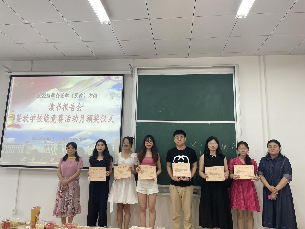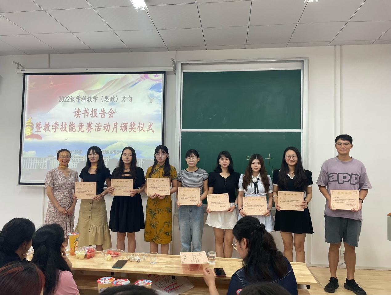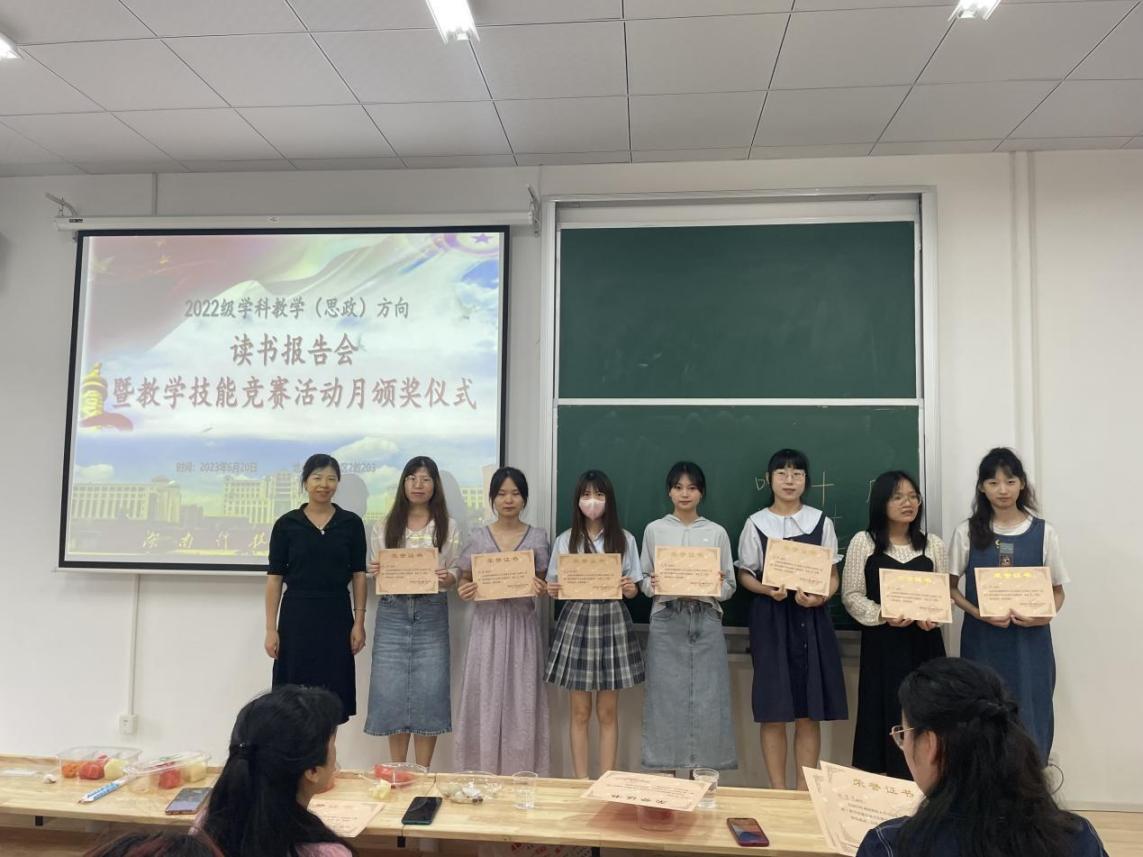 通过本次活动,为同学们搭建了舞台,为大家提供了一次锻炼、展示的机会,同学们相互观摩、取长补短、互相学习,不仅加深对思政课内容的认知和思考,更是加深对思政课教师的理论素养和精神风貌的理解。全面促进同学们的教学技能和综合素质的发展。最后老师们为获奖同学颁发荣誉证书,本次教学技能活动竞赛颁奖仪式圆满结束。