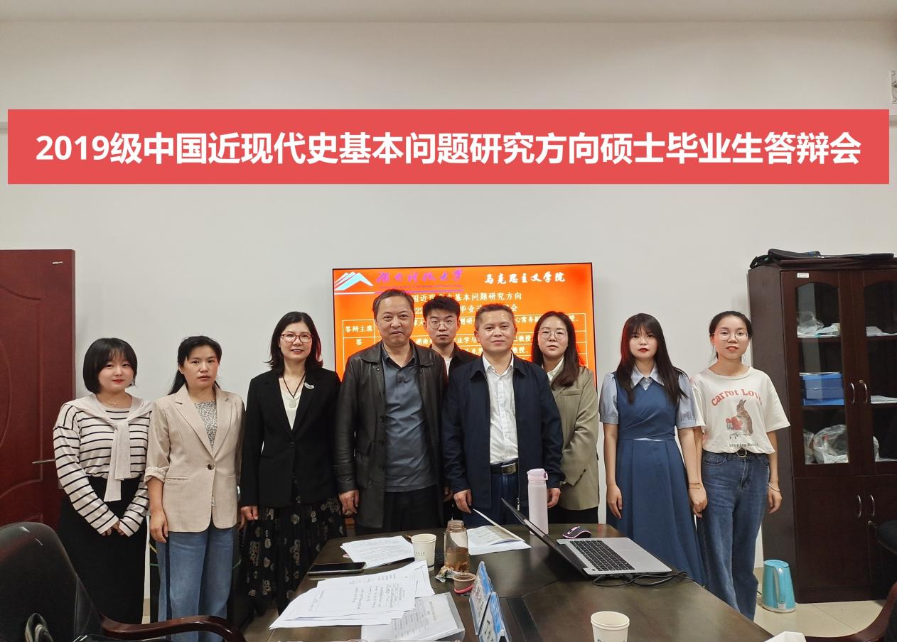 2022年5月21日上午,2019级中国近现代史基本问题研究方向硕士生论文答辩在立言楼A119举行。湘潭大学毛泽东思想研究协同创新中心常务副主任黄显中教授担任本次答辩主席,公司徐德刚教授、米华教授、李端祥教授、谢忠教授、杨松菊教授担任答辩委员。中国近现代史基本问题研究方向2020级、2021级硕士研究生旁听此次答辩。