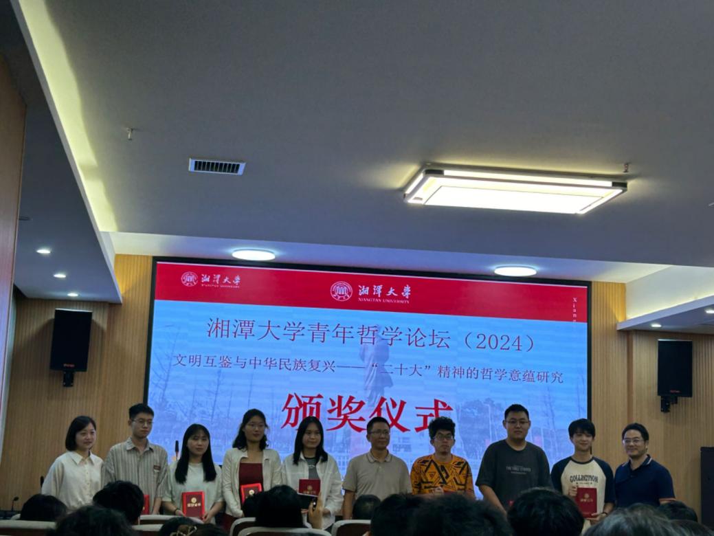 2024年6月16日,由湘潭大学研究生院、湘潭大学教务处和湘潭大学碧泉书院主办,湘潭大学碧泉书院研究生会、湘潭大学碧泉书院研究生团总支和304永利集团协办的第二届青年哲学论坛在湘潭大学成功举行。公司颜中军教授和陈玉林教授带领22级、23级哲学专业研究生共同参加会议,围绕主题“文明互鉴与中国民族复兴——‘二十大’精神的哲学意蕴研究”展开了热烈的讨论。