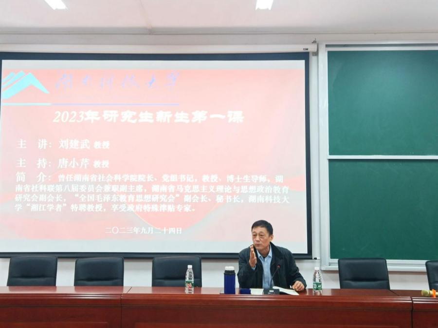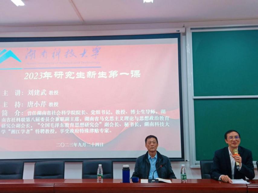 9月24上午,304永利集团2023级研究生新生开学第一课在昭潭书院第二教学楼102顺利举行。公司特聘教授、博士生导师刘建武教授主讲,马院经理唐小芹教授主持。