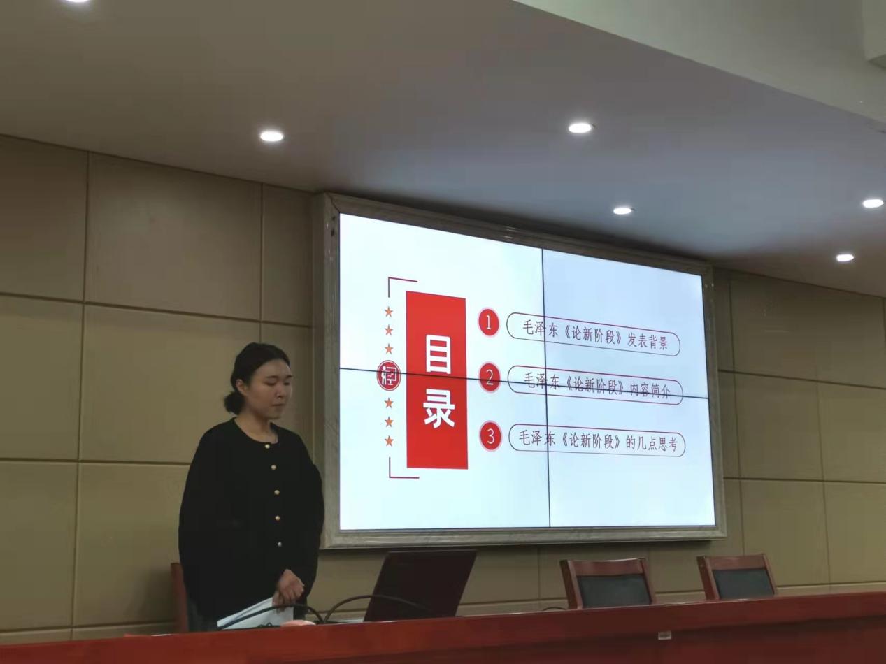 此次读书报告会共有四位同学参与汇报。敬贵竹同学分享了阅读《历史延续性视角下的中国道路》一文的所思所感,她指出,该文章用历史比较的分析方法论证了中国特色社会主义道路的历史延续性及其内在动力与惰性缺陷。最后敬贵竹提出了应如何读书的几点思考。舒隽同学从框架逻辑、内容特点与成书的时代背景和实践基础等方面对《习近平谈治国理政》第三卷 进行深刻解读,并结合当下的热点问题提出了现实思考。樊婧同学分享的是《中国共产党的历史使命与行动价值》,这篇文章为我们全方位、多角度、立体化地展示了中国共产党的基本特征,深刻揭示了中国共产党为什么“能”的深层逻辑,最后樊婧同学结合“七一讲话”精神对党的百年奋斗历程做了更深入的理论剖析。赵杨同学就毛泽东的《论新阶段》一书分享了自己的心得感悟,她认为当时的“新阶段”是抗日战争和抗日民族统一战线的新阶段,同时结合中国化的历史进程对该书的当代价值进行了理论探索。