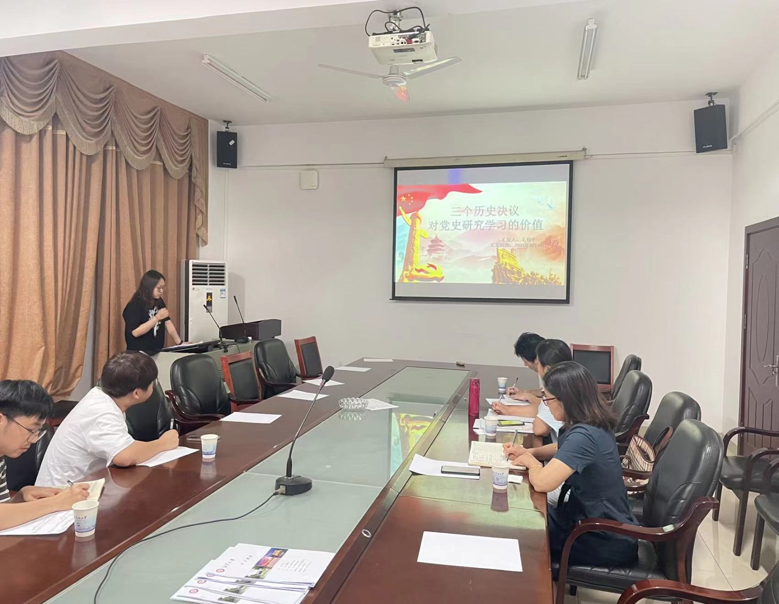 为深入学习十九届六中全会精神,开拓马克思主义发展史的研究视域,2022年6月16日,公司21级马克思主义发展史方向在立言楼A529举行了主题为“从三个‘历史决议'看党的百年奋斗”的读书报告会。报告会由谢忠老师主持,韩平老师、彭曼丽老师和周建华老师莅临指导,2021级马克思主义发展史方向全体硕士生参加。