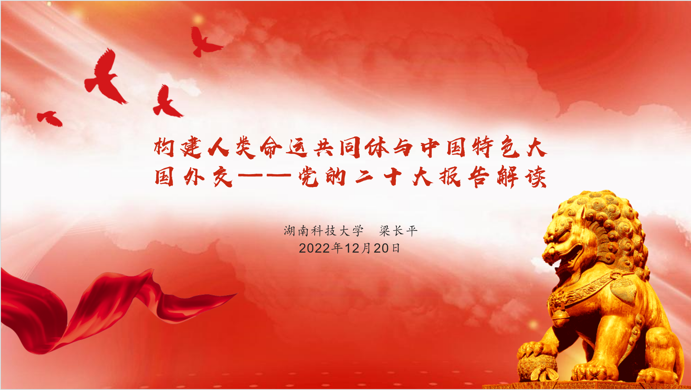 第二阶段,由梁长平老师作《构建人类命运共同体与中国特色大国外交——党的二十大报告解读》的分享交流。梁老师分析了党的十八大以来,中国特色大国外交的时代背景以及取得的成就,指出学思践悟习近平外交思想是成功推进中国特色大国外交的根本保证,要不断开创中国特色大国外交新局面,推动构建人类命运共同体。